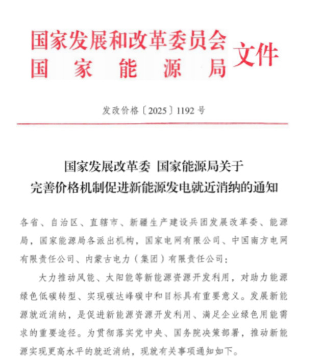 關(guān)于公開征求《關(guān)于貫徹發(fā)改價格〔2025〕1192號文件進(jìn)一步明確新能源就近消納價格政策有關(guān)事項的通知(征求意見函)》意見建議的公告